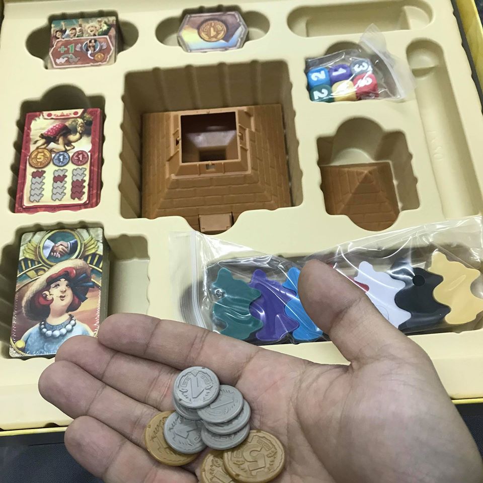 -Toàn bộ lạc đà, dice, kim tự tháp giờ chất liệu đều là nhựa. Lạc đà được đúc khá chắc tay. Mình khá thích comps bằng gỗ nhưng với game này, việc đổi sang nhựa hoàn toàn khiến toy factor của game tăng lên khá nhiều (bền hơn, hấp dẫn hơn với trẻ con)