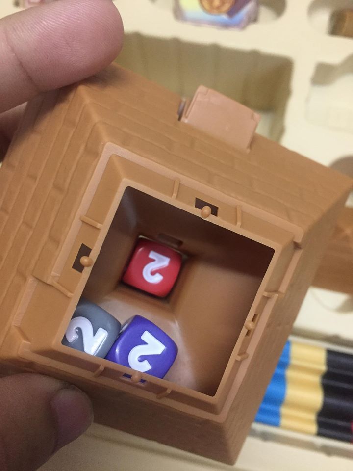 – Tuy thiếu đi 1 module nhưng bản 2nd thay đổi 1 luật khá quan trọng, đối với bản cũ, bạn sẽ roll hết dice từ trong kim tự tháp ra mới hết 1 vòng chơi. Tuy nhiên với bản 2nd bạn chỉ có 5 lượt nhả dice (trong 6 xúc xắc – 5 cho lạc đà đua, 1 cho lạc đà điên)